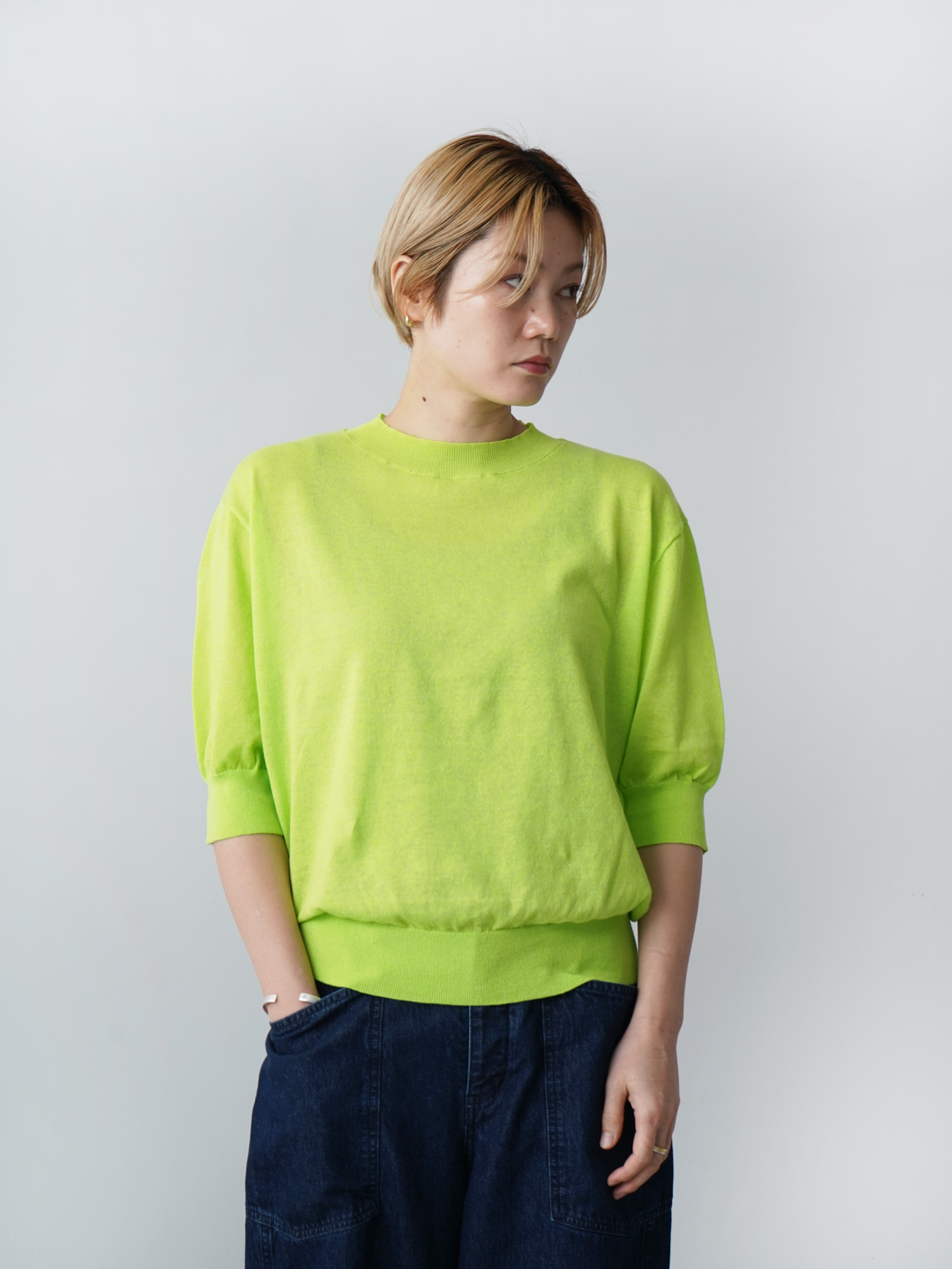 リネンエステルニット 6分袖プルオーバー