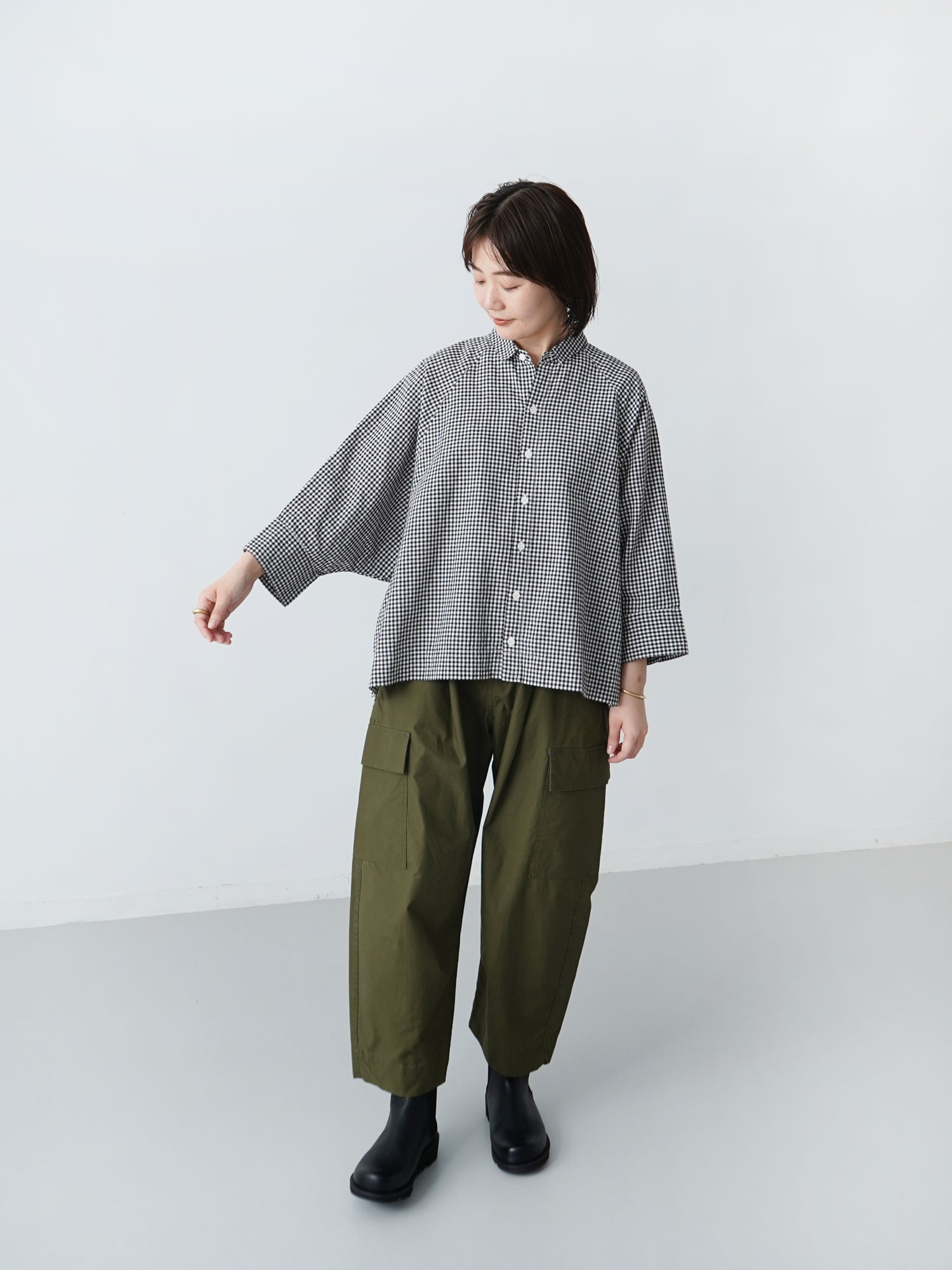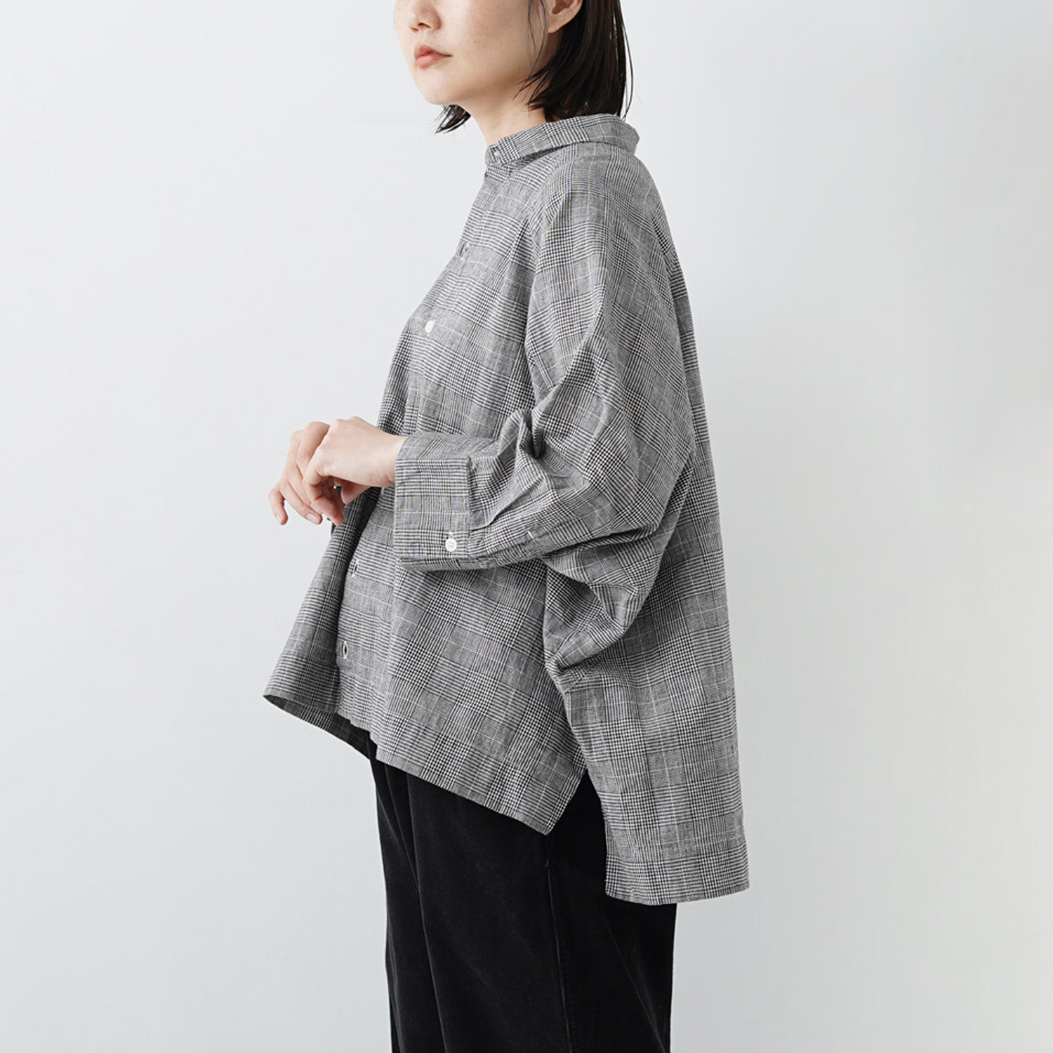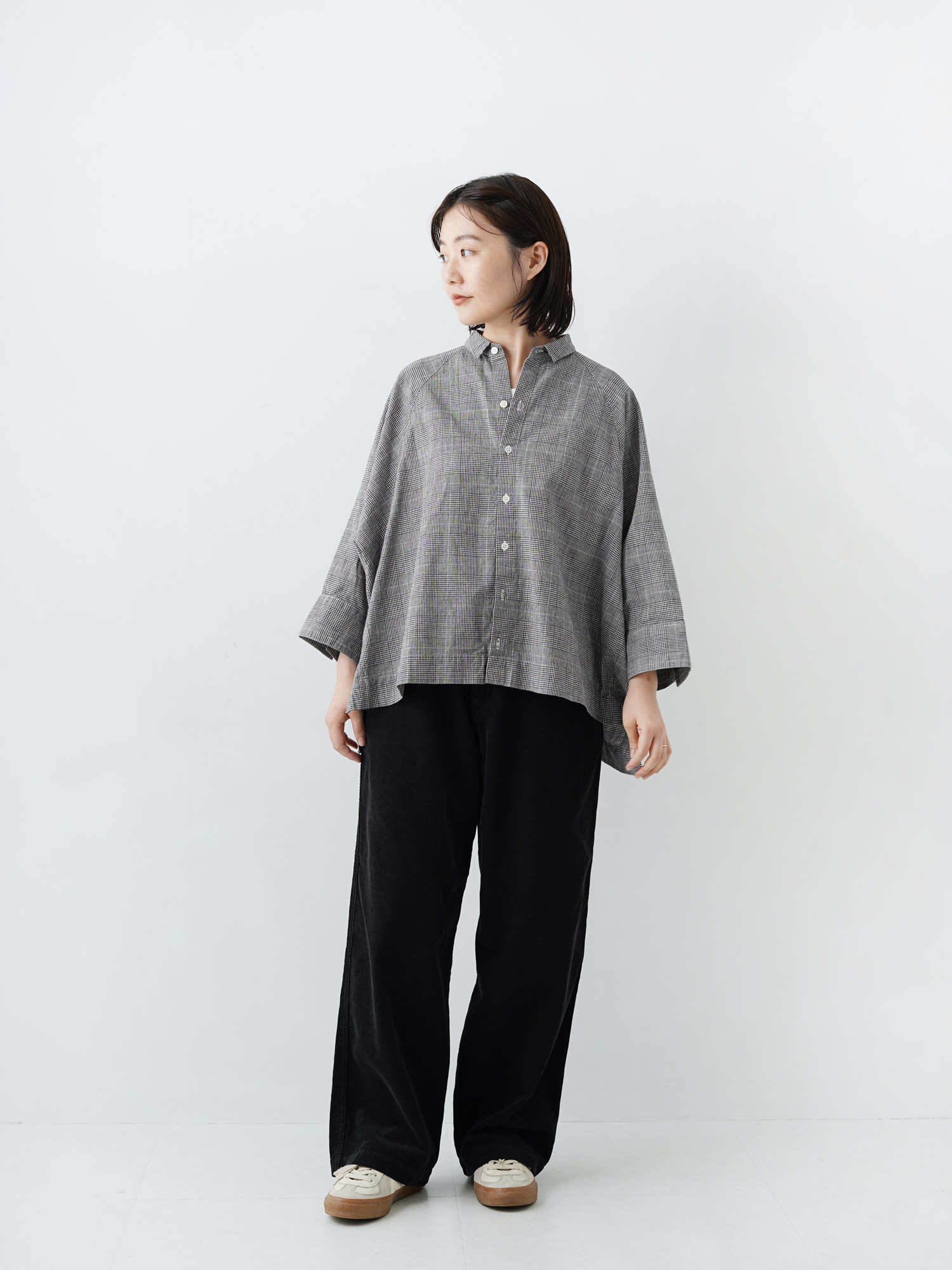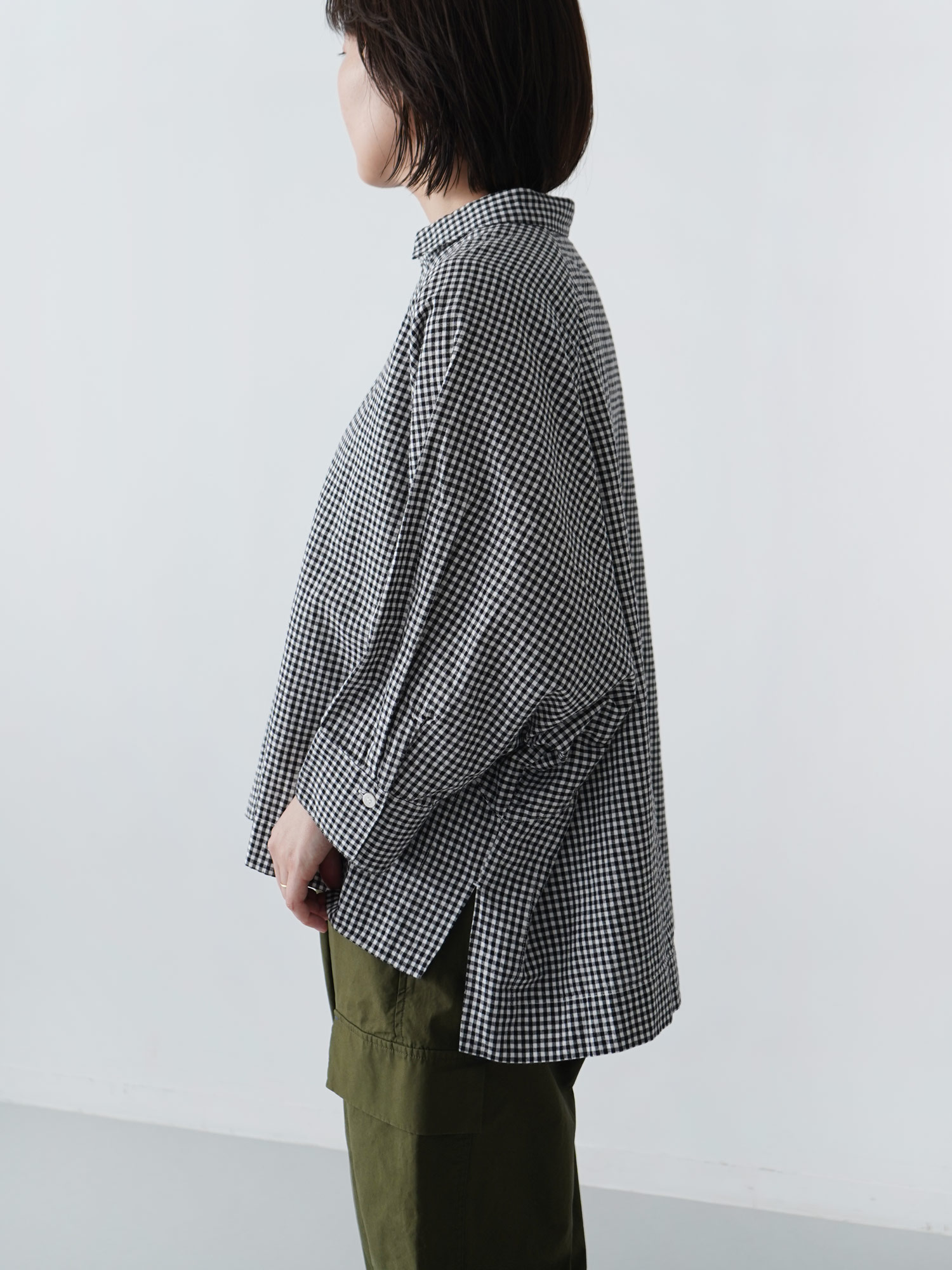 モノトーンチェック ポンチョシャツ