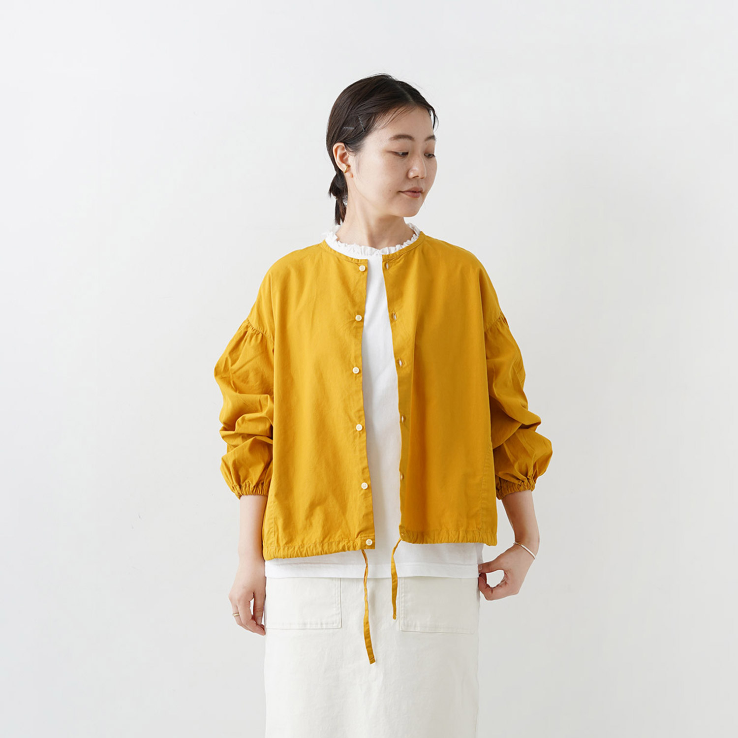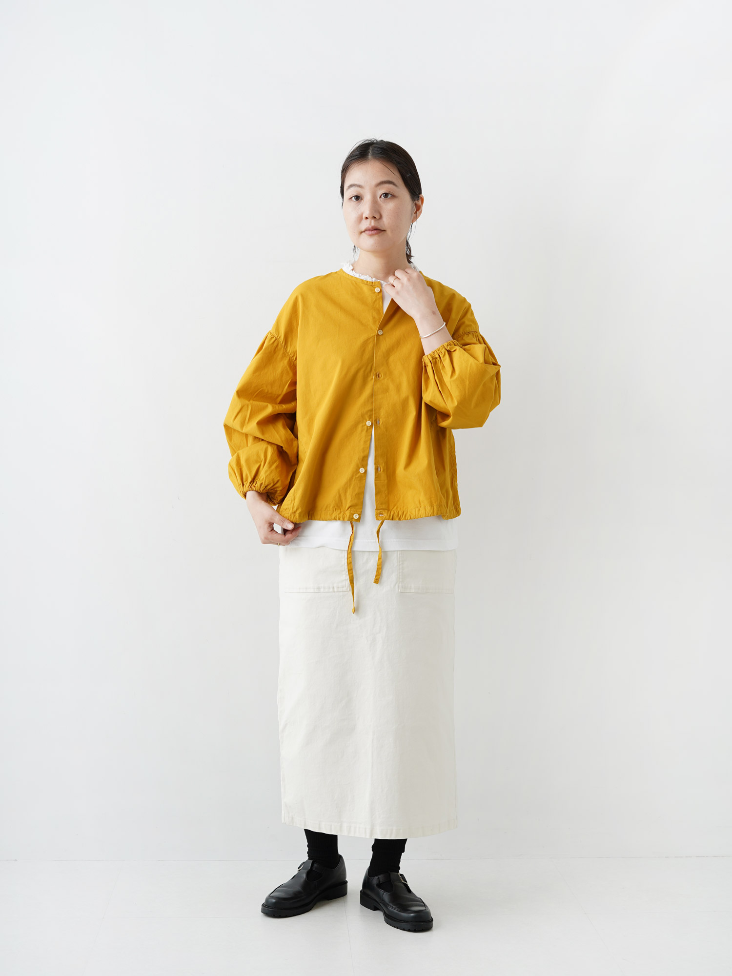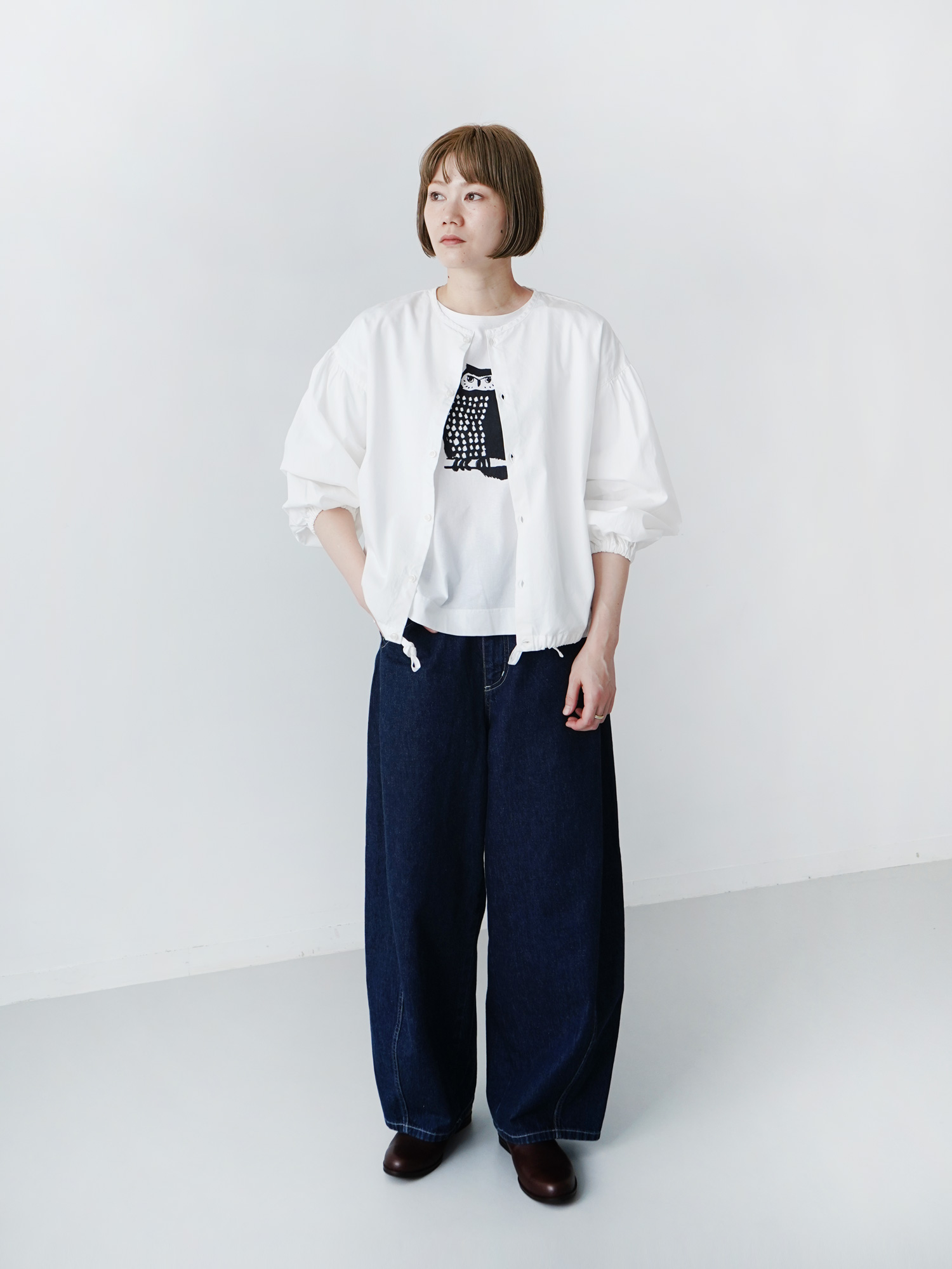染めブロード クルーカーデシャツ