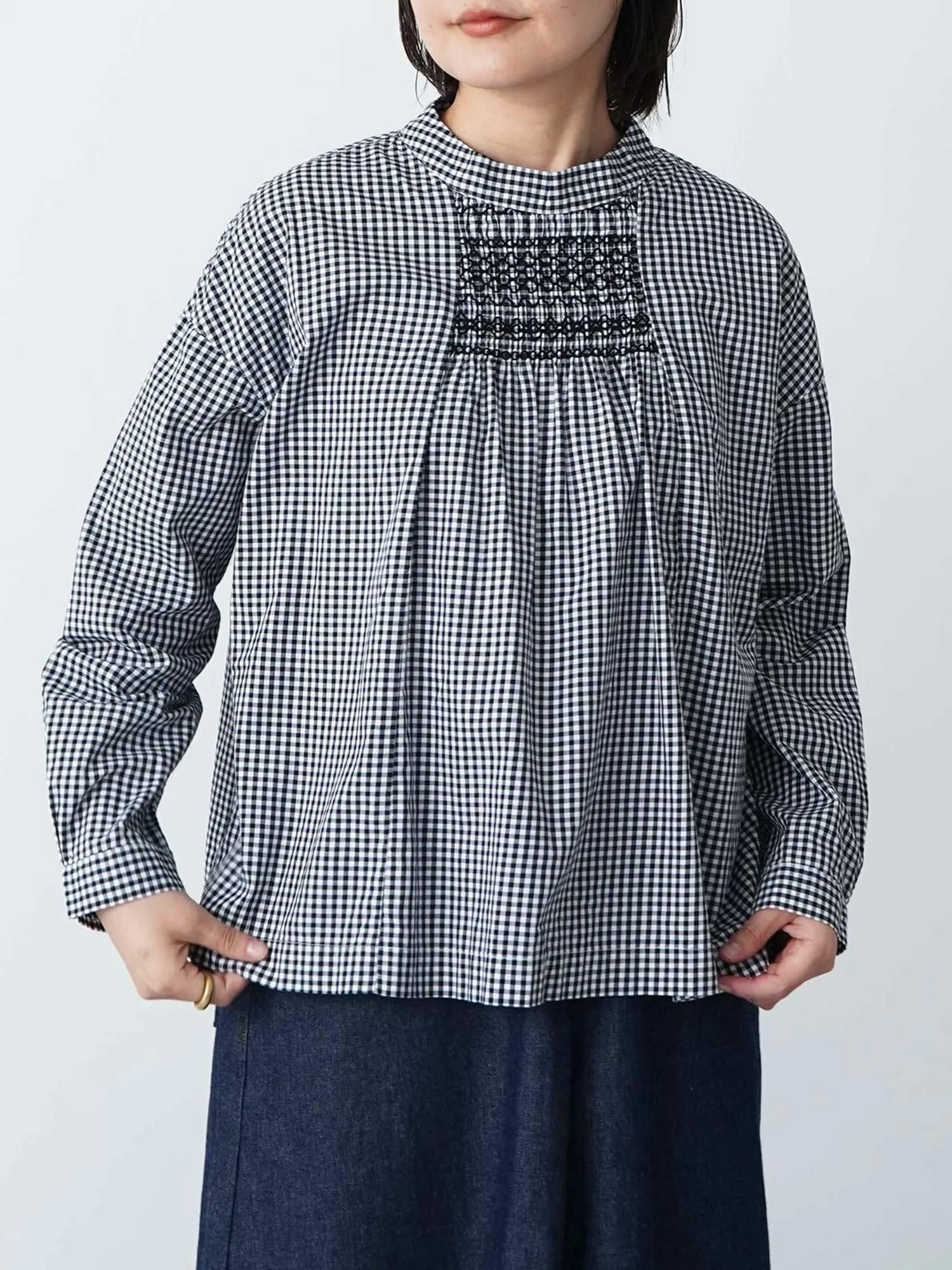 ブロードスモッグ刺繍シャツ