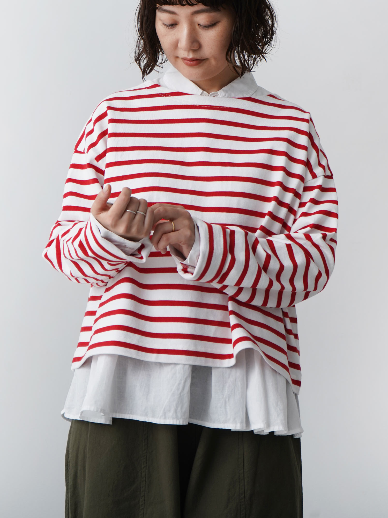 17/-ボーダー ショートワイドプルオーバー