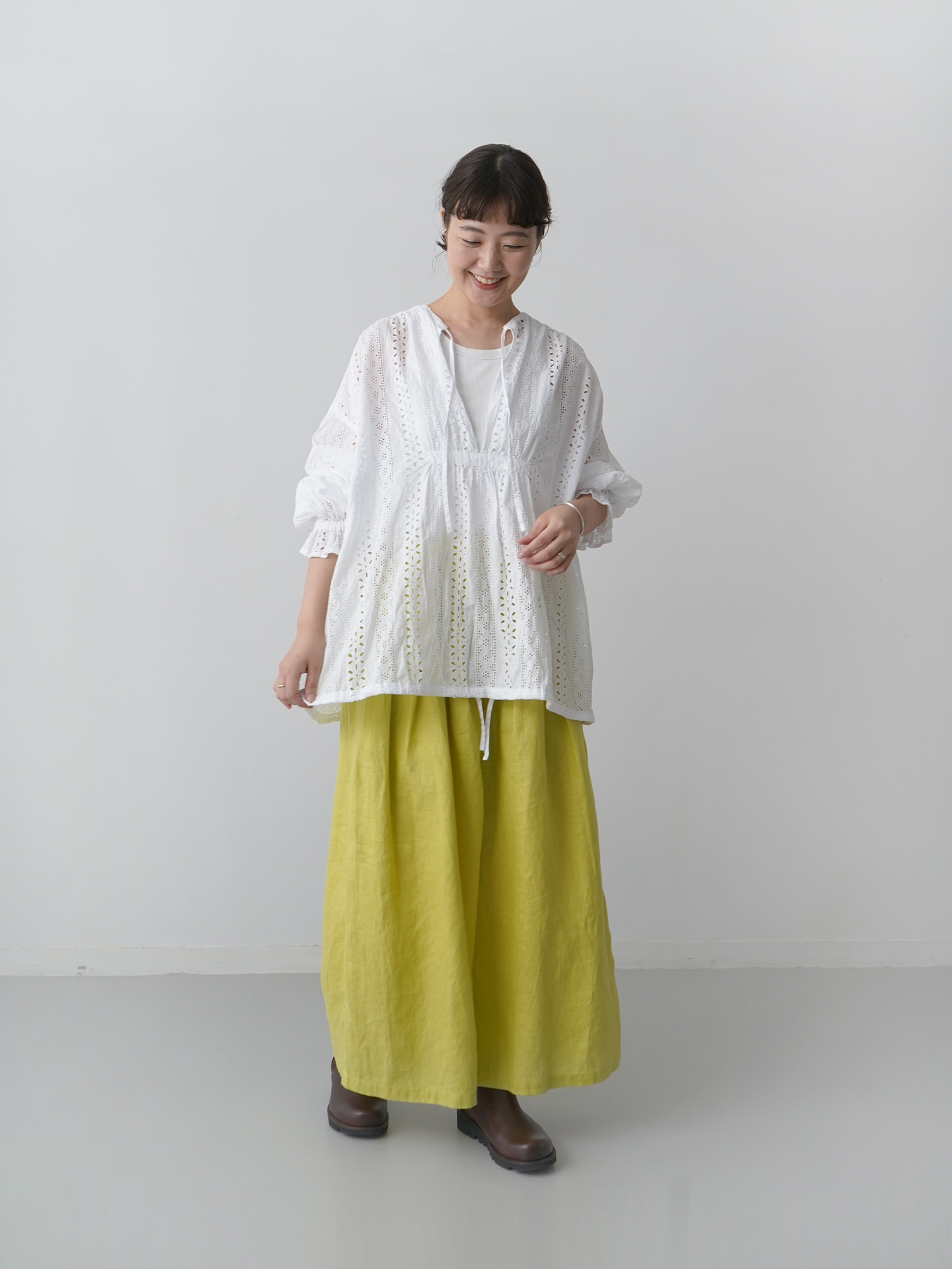 40キャンバスリネン バレルタックワイドパンツ