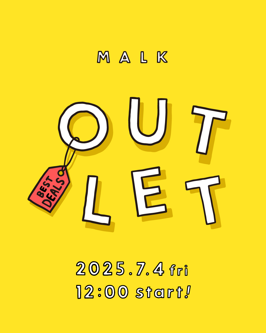 2025.07.012025 SUMMER OUTLET SALEのお知らせ 日頃よりMALK online storeを ご愛顧頂きましてありがとうございます。 MALKにてS…… READ MORE
