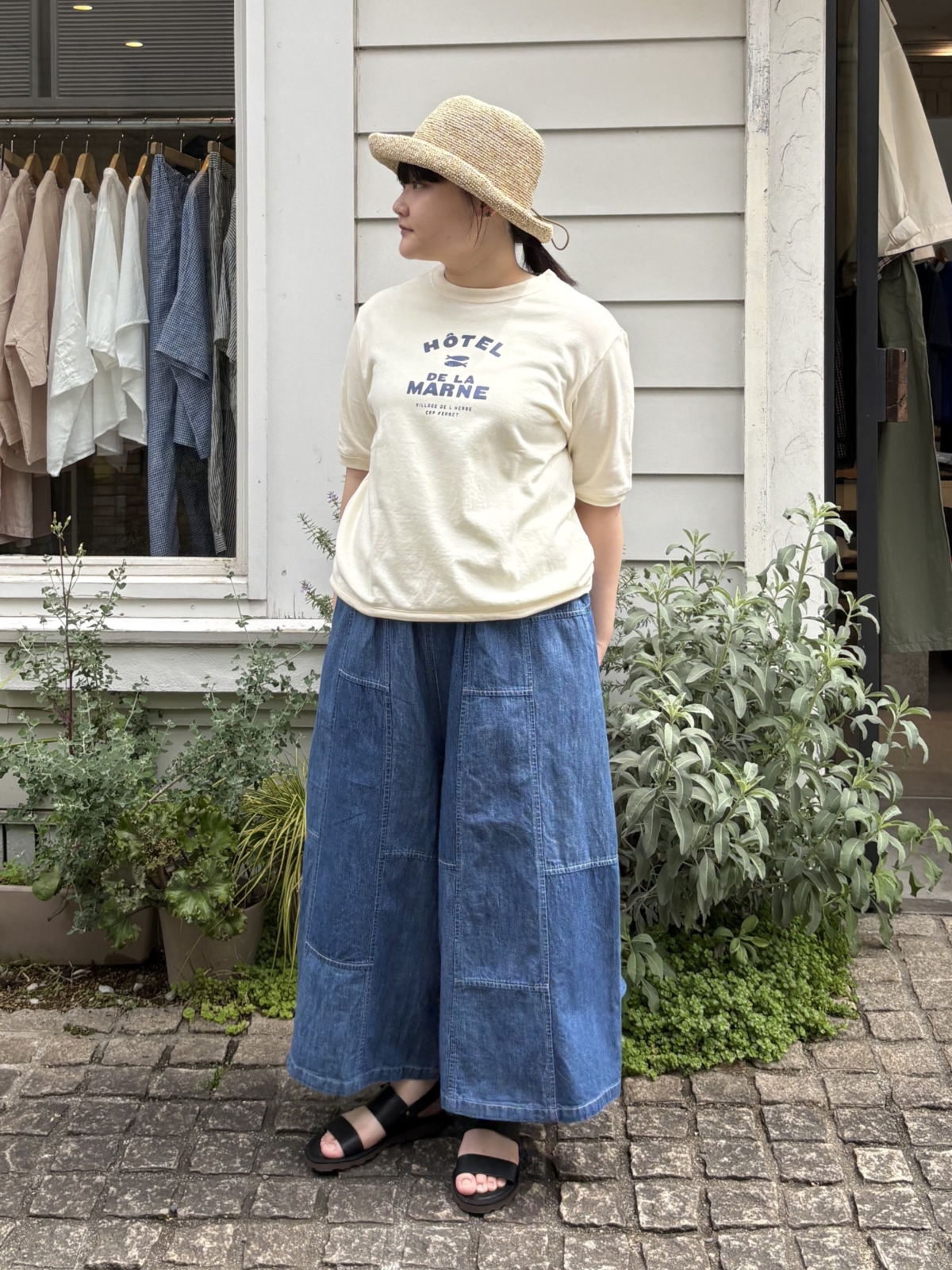 日常でも着回ししやすく、薄手のデニム素材は夏にも涼しく穿いていただける1着です。