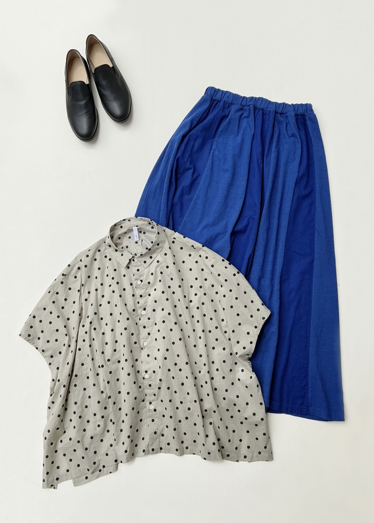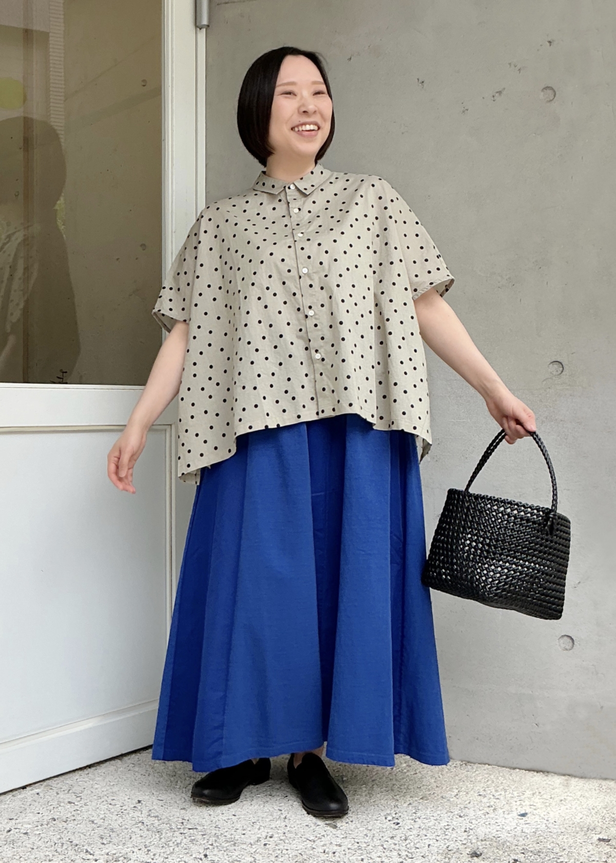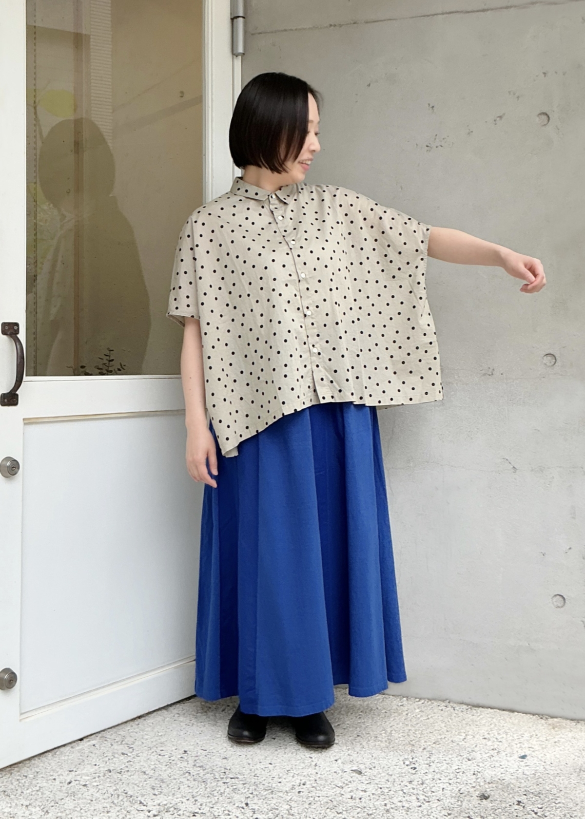 小さめのドットは、柄物の中でも合わせやすく、大人な着こなしが出来るのでオススメです。