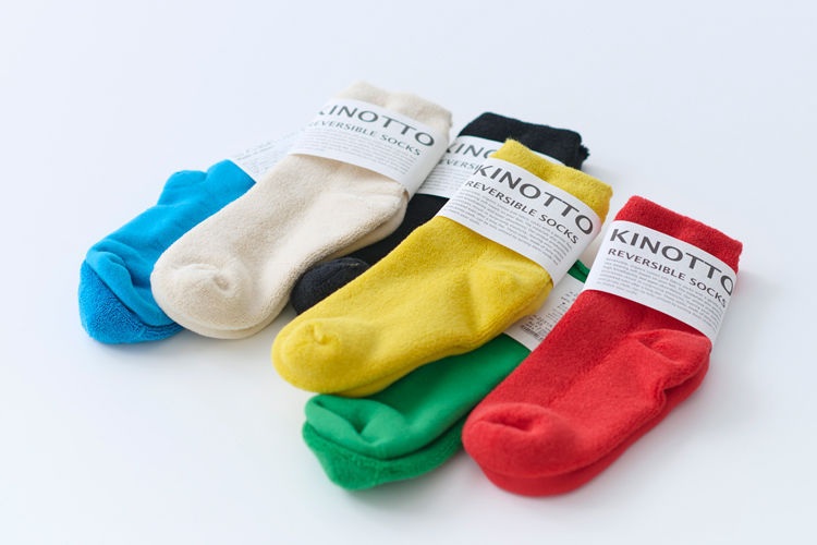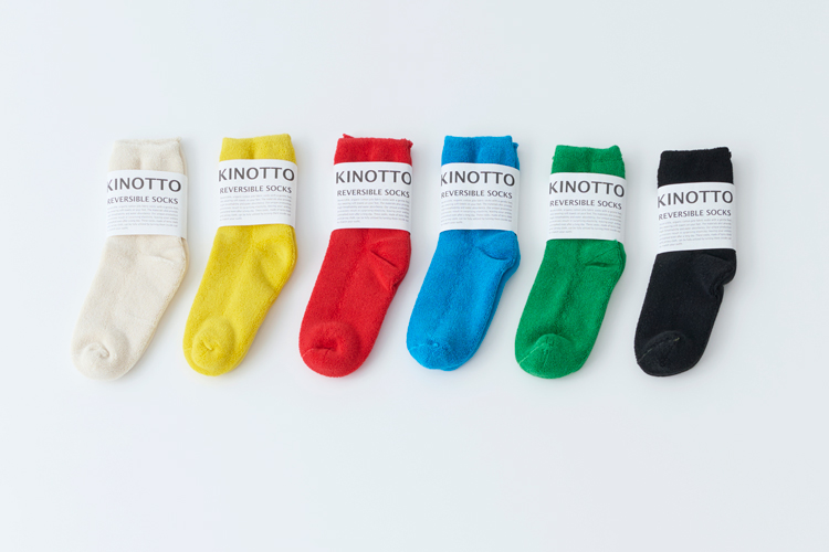 さて、つい最近までうまく衣替えができすに過ごてしまったKINOTTOなのですが、じつは長らくお馴染みのタグでお届けしてきたリバーシブルパイル靴下が、静かにしっかり衣替え。