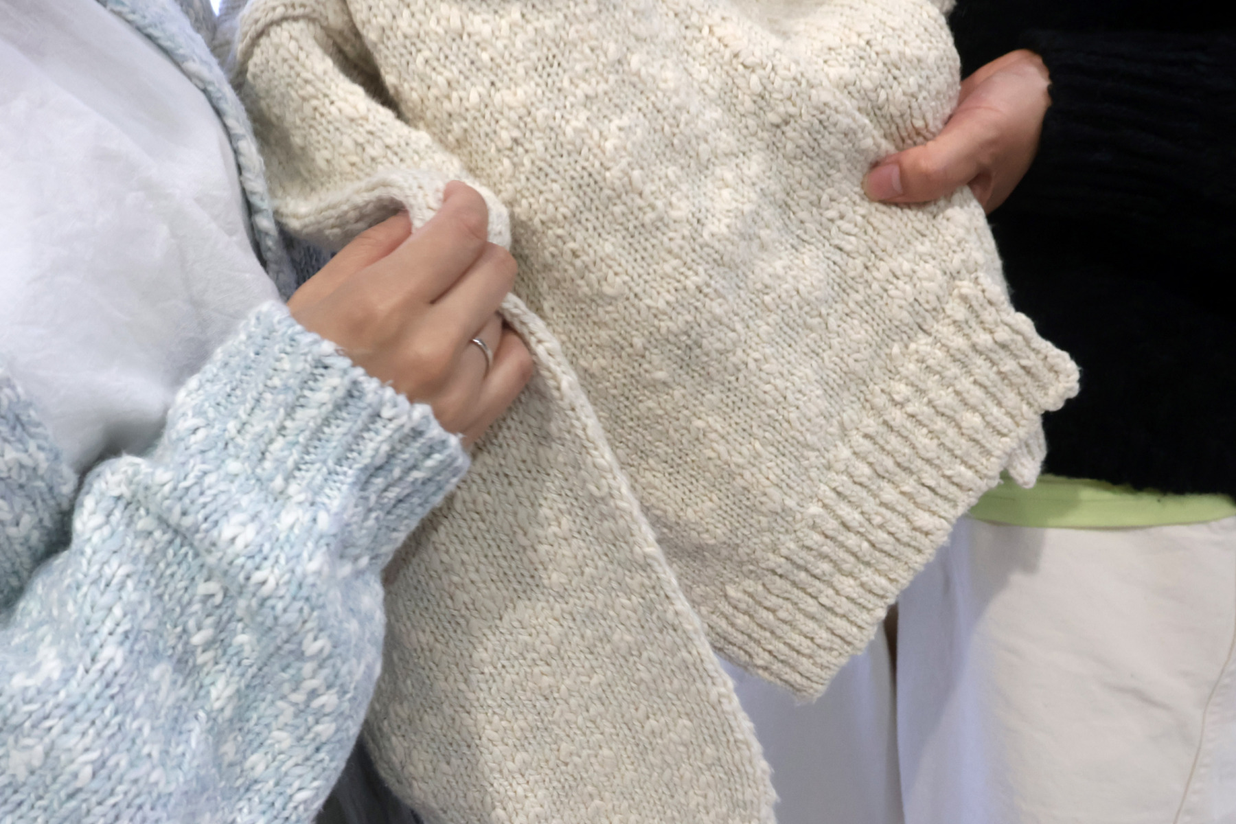 他のニットにはない、表面のぽこぽことした風合いが可愛らしく