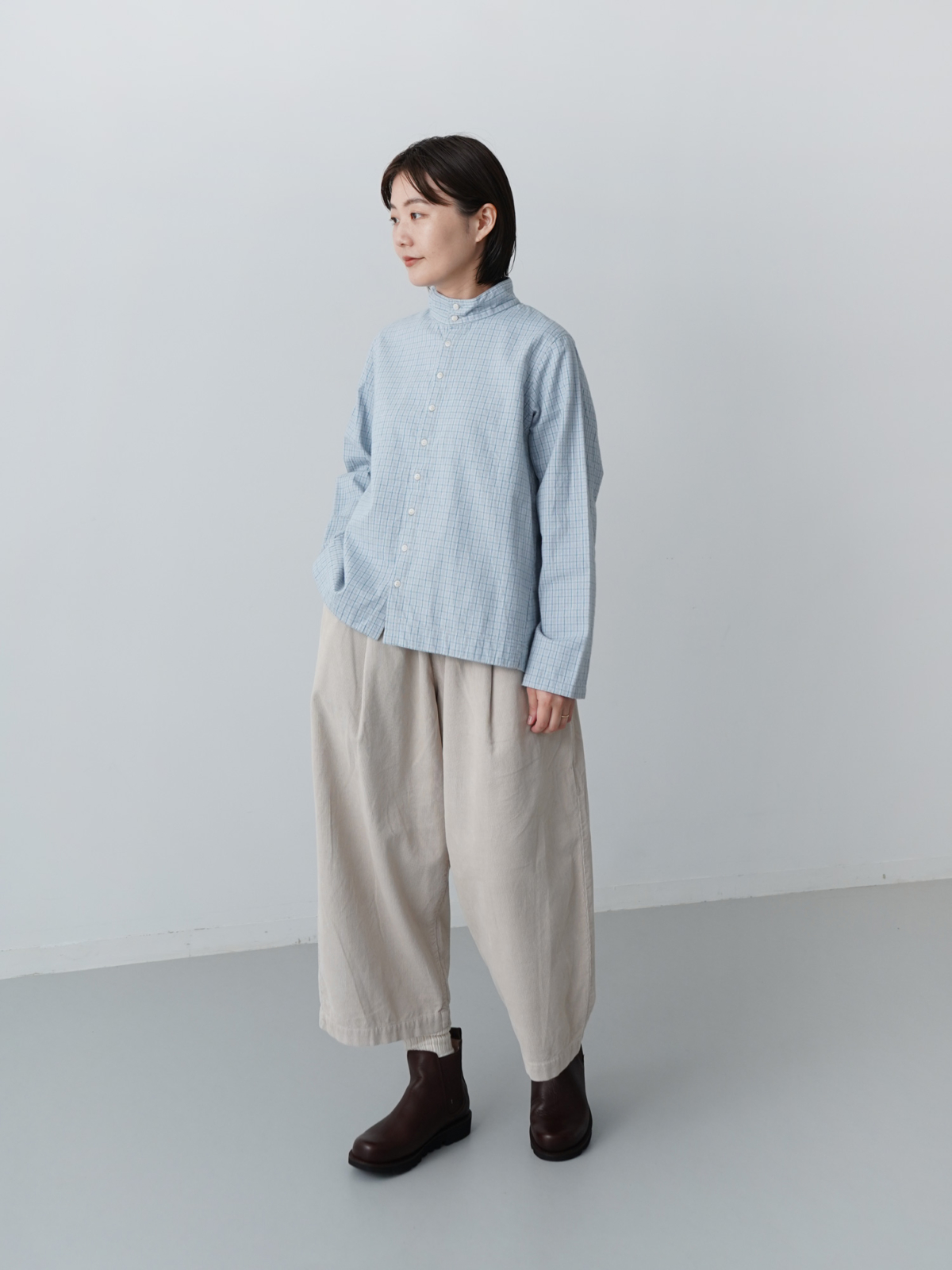 カジュアルすぎない細畝です。たっぷりと生地を使っていますが軽い着心地です。