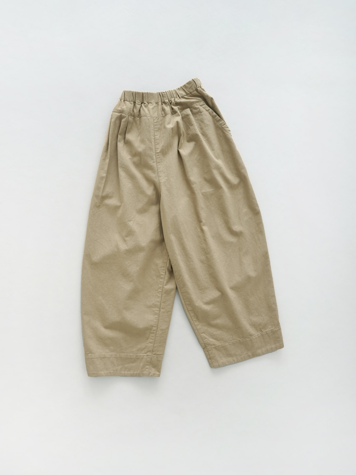 楕円のような丸みのある筒にすぽっと足を入れるようなイメージ。生地との相性によって落ち感が大人っぽくなるようにしています。
