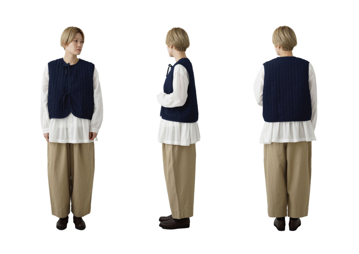 日常での着回しはもちろんですが、少しきちんと感のあるシーンでも着られます。デニムではちよっとカジュアル過ぎるけどかしこまり過ぎたくない。度々起る日常でのその時に丁度良い、とママさんスタッフのリアルな声。ネイビーブラックは特に着こなしの幅が広がりそうです。同じシリーズのジャケットと、セットアップで準備をしておくのも、安心感があります。ありがたいアイテムです。