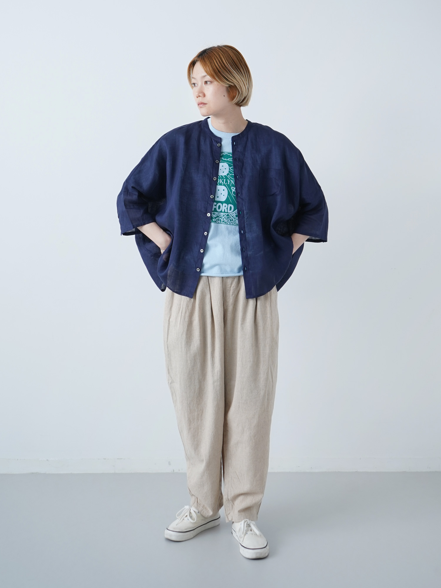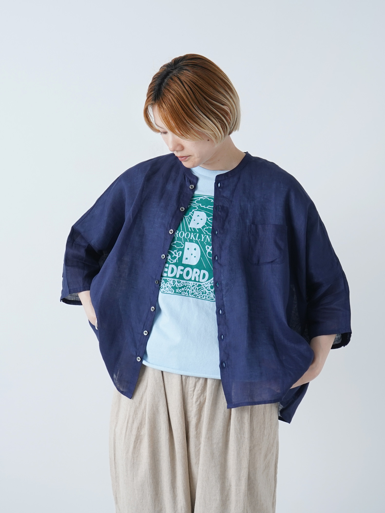 60フレンチリネン ランドスケープシャツ¥15400-