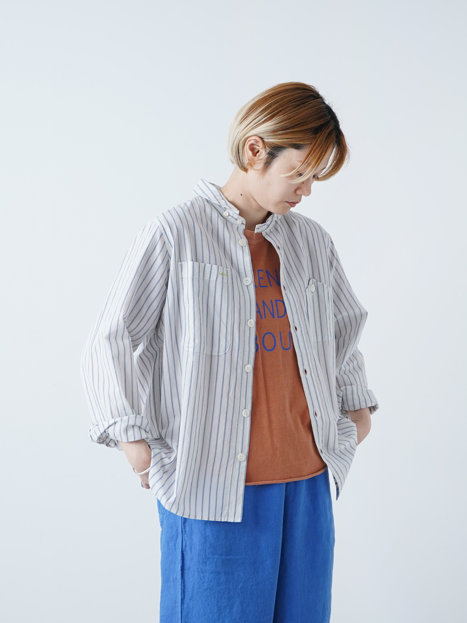 CLシャンブレーストライプガチャポケシャツ¥16280-