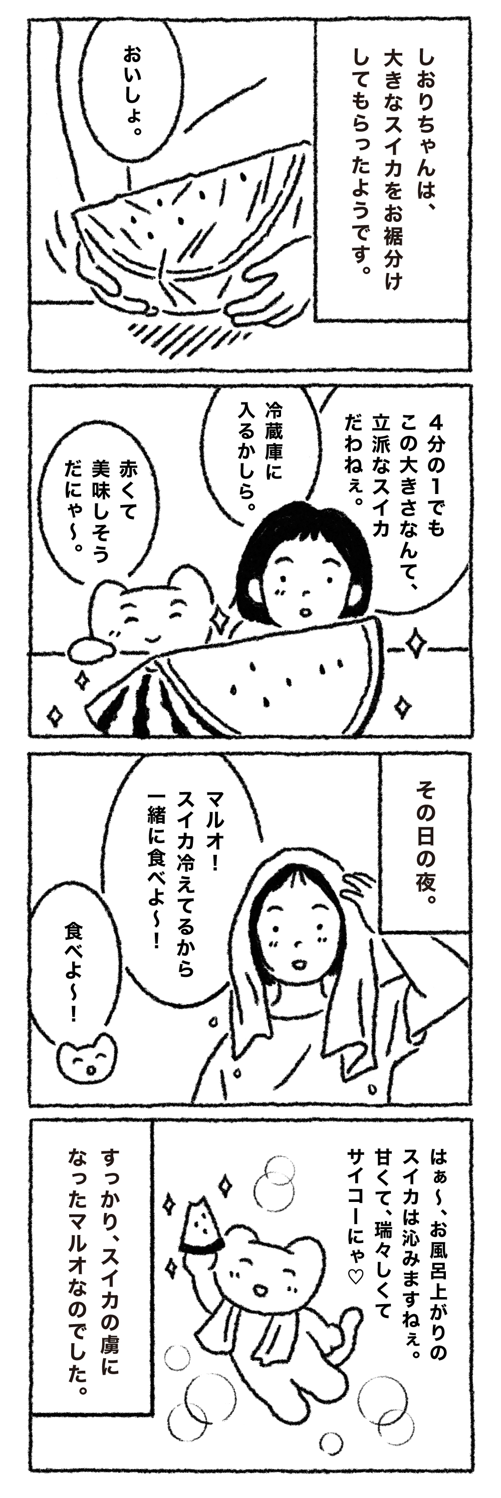 お風呂上がりの火照った身体と喉の渇きに、冷たくて美味しいスイカ。