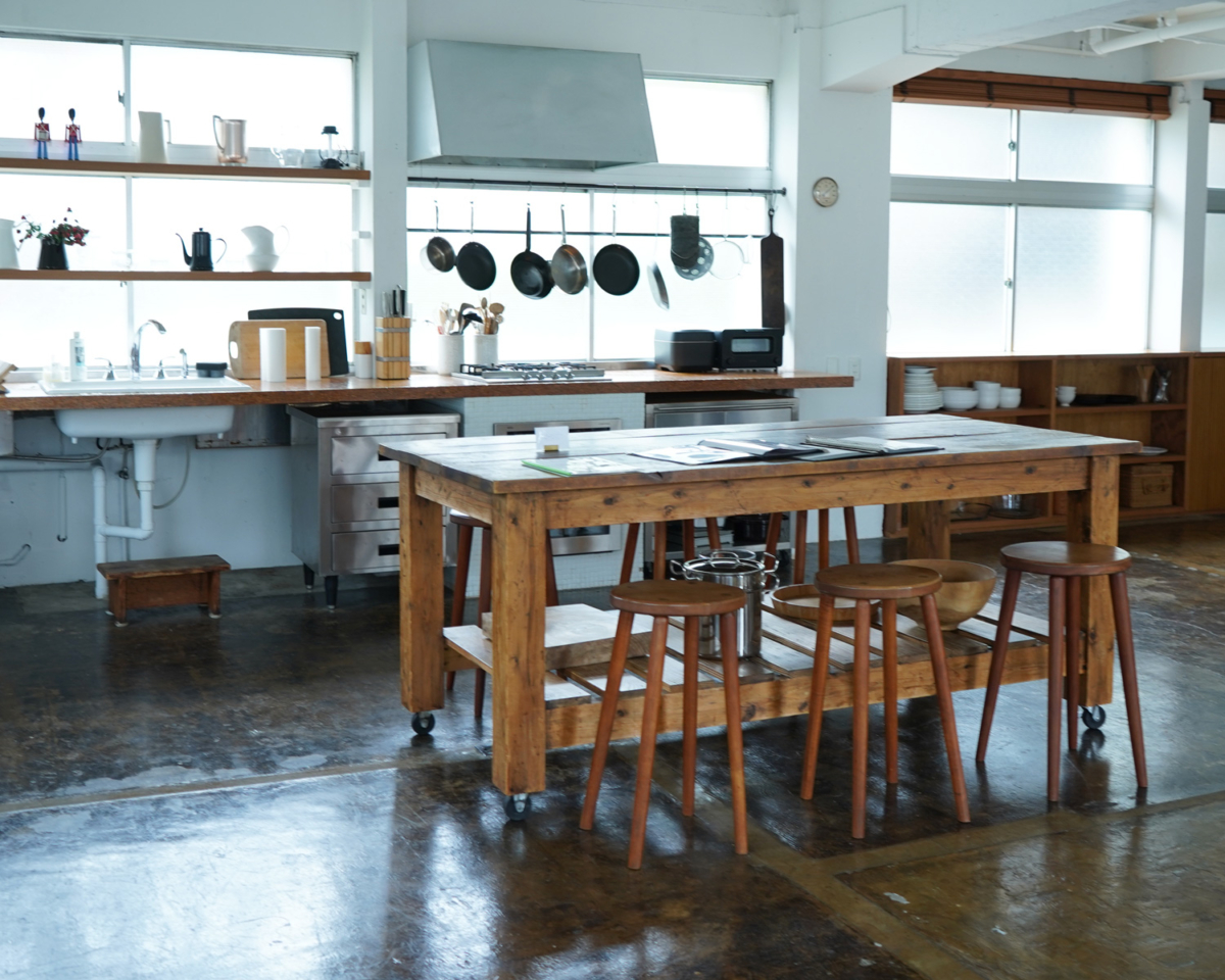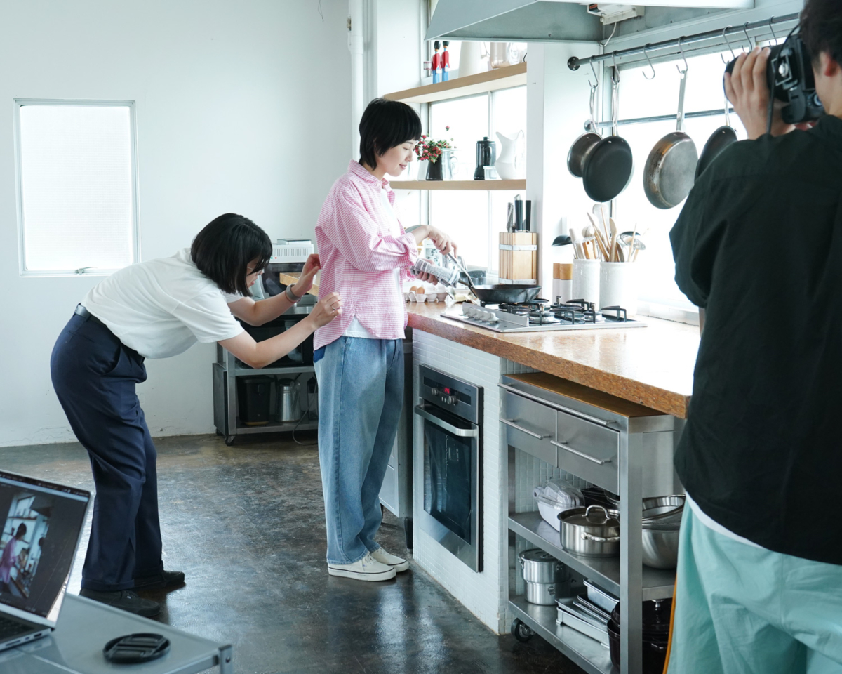 朝食のイメージショットが入るので、大きなキッチンも魅力なスタジオでの撮影。