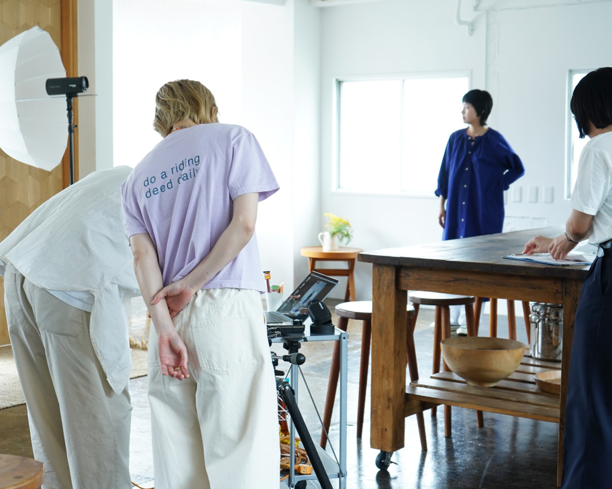 テーマ “ matinée “ を作り上げるために朝食のカットも入り、いつもとまた少し違った雰囲気です。迎えた当日は緊張感がありながらも最後まで温かな空気感の中撮影が終了しました。N / Lのロケ当日の様子も是非ご覧ください。