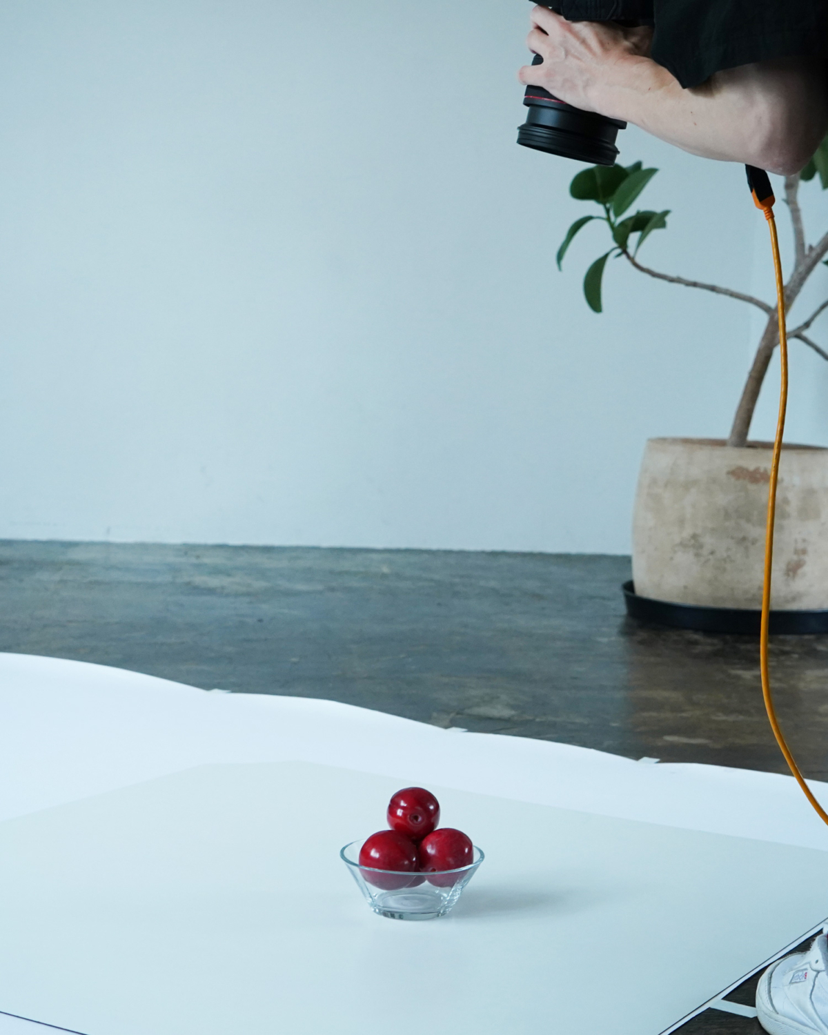 ピカピカに磨きあげたスモモなどフルーツも物撮りします。