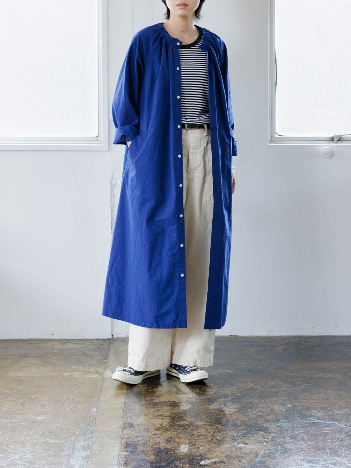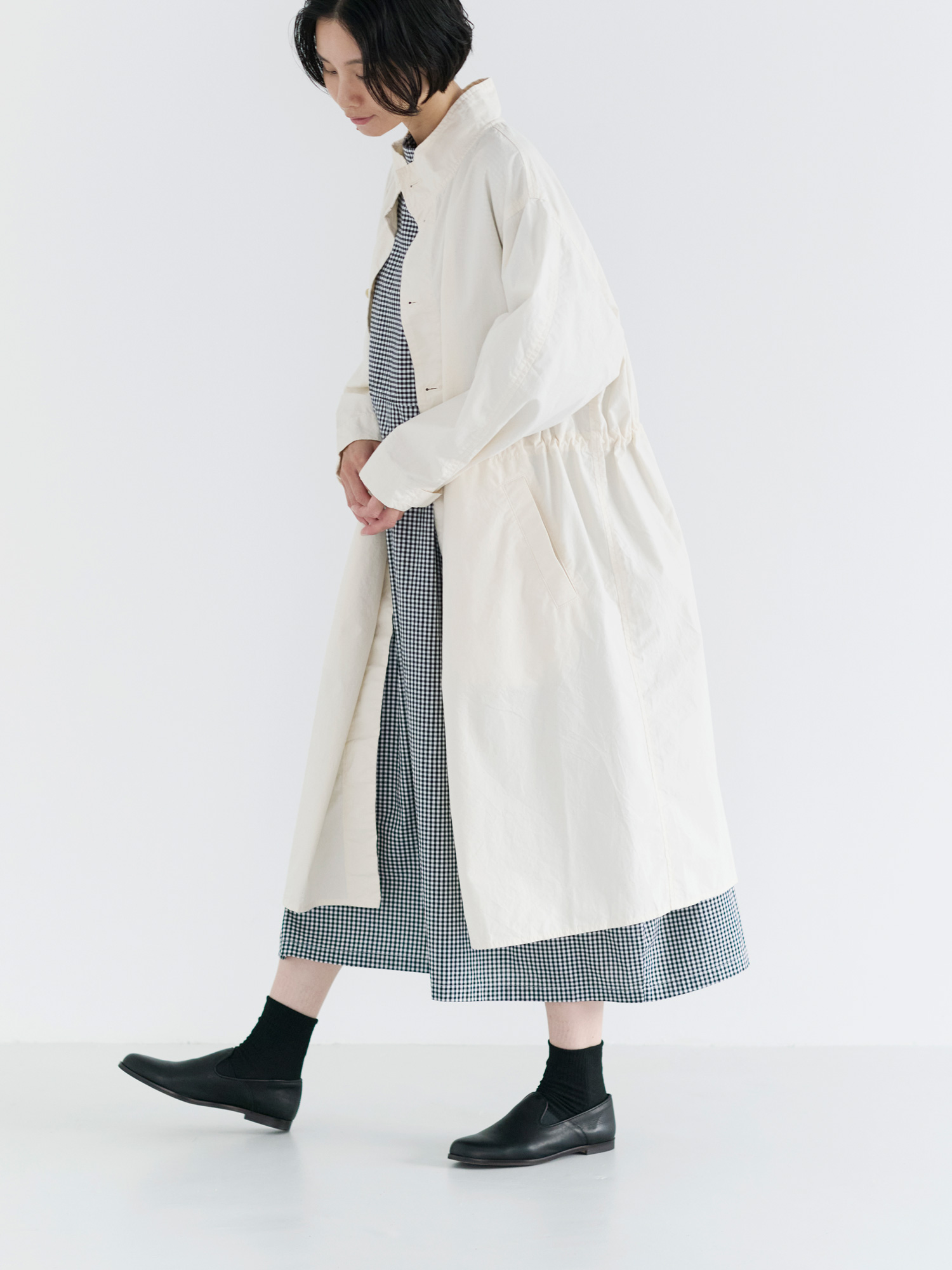 纏うコートには春風を運んでいくような軽やかさがあります。