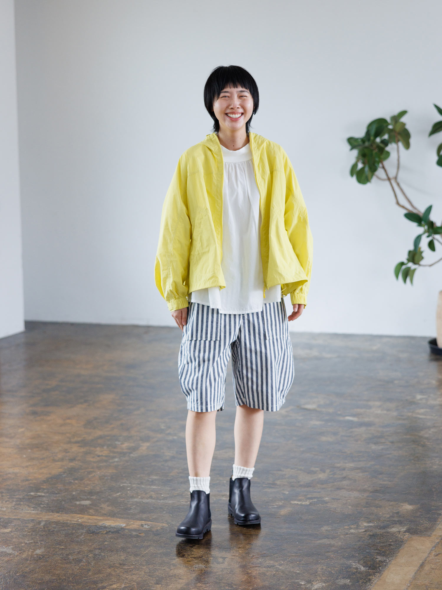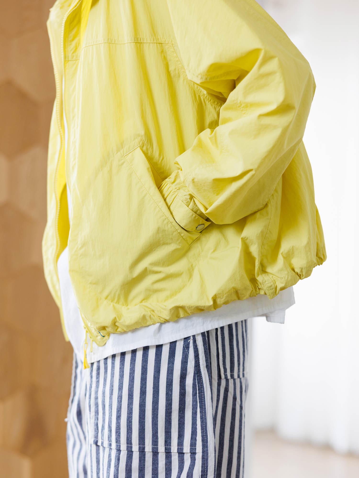 ヴィヴィットなレモンカラーのジャケット。