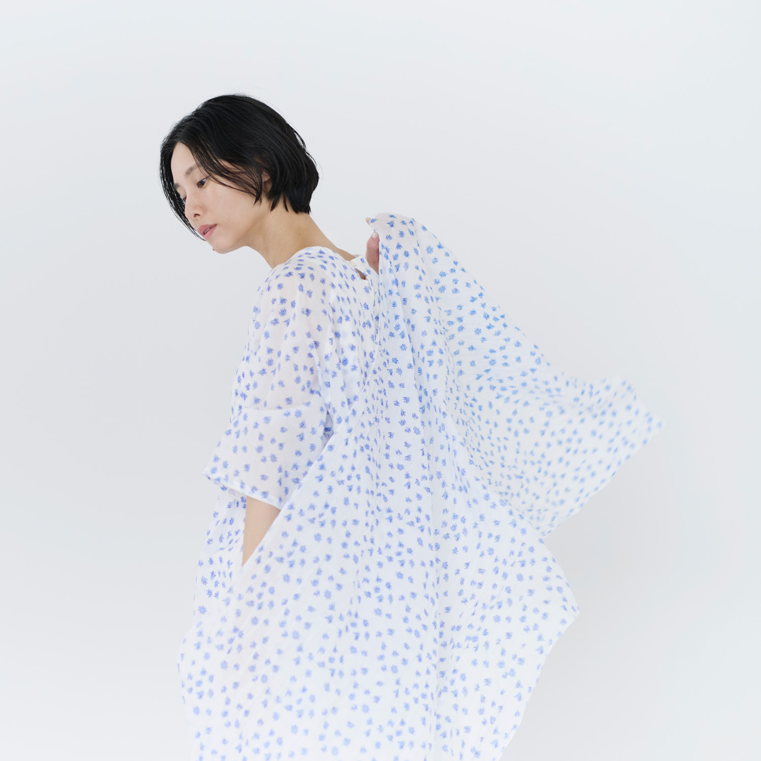 小さな花々の様子をこだわりのテキスタイルに落とし込んでいます。