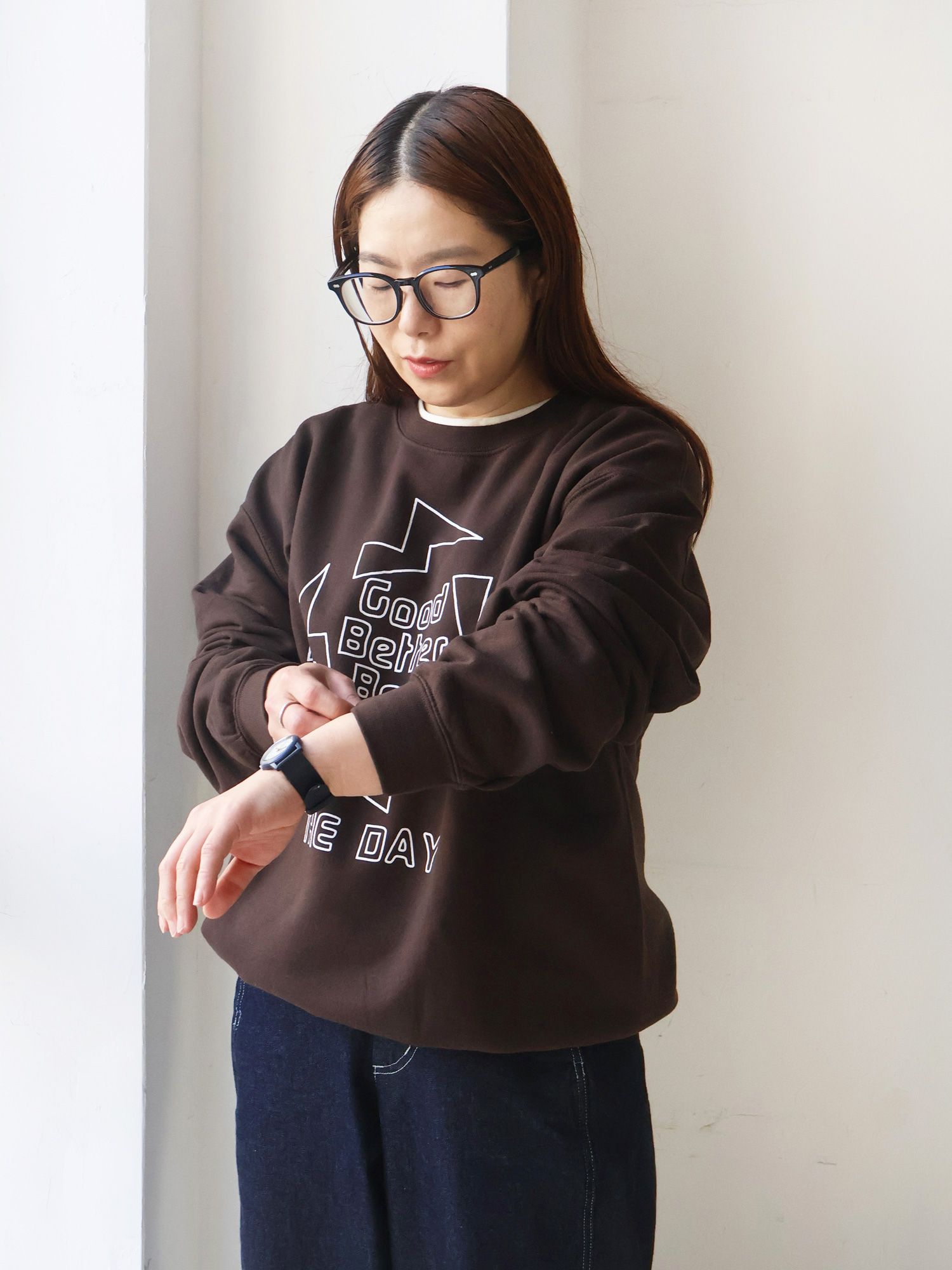 パンツ⇒ “デニムパンツにはロゴプリントのスウェットを合わせる ”