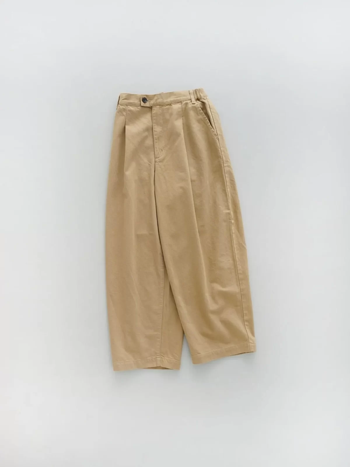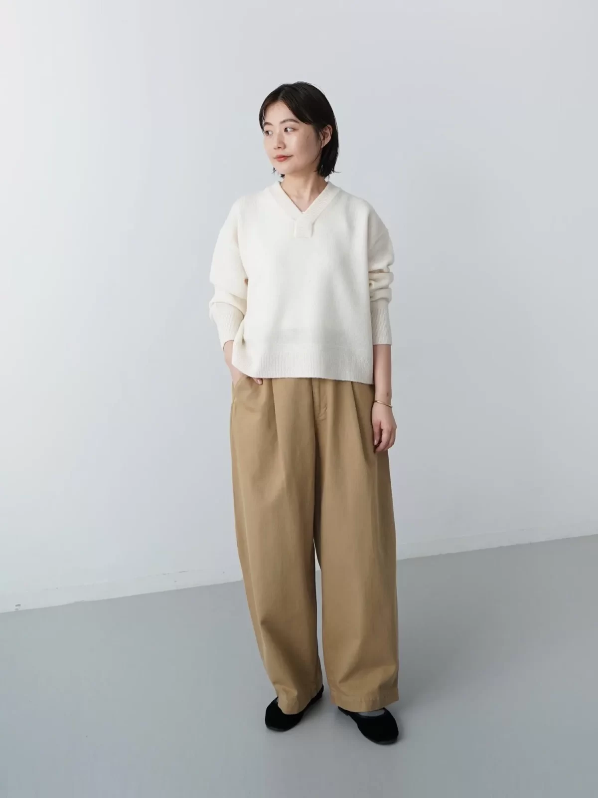 チノパンツも通常の綿100%とは異なり、バルキーな素材感とシルエットの丸みが相まってトラディショナルな雰囲気になり過ぎずラフなスタイルにもフィット。
