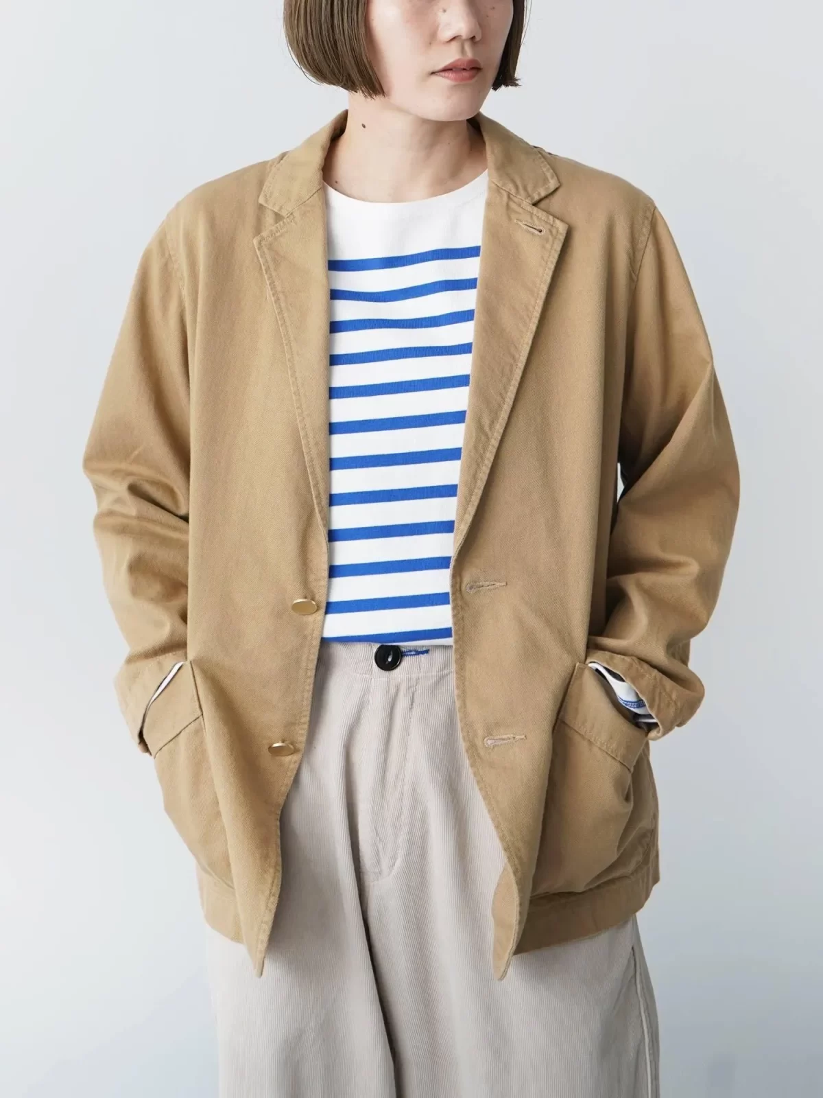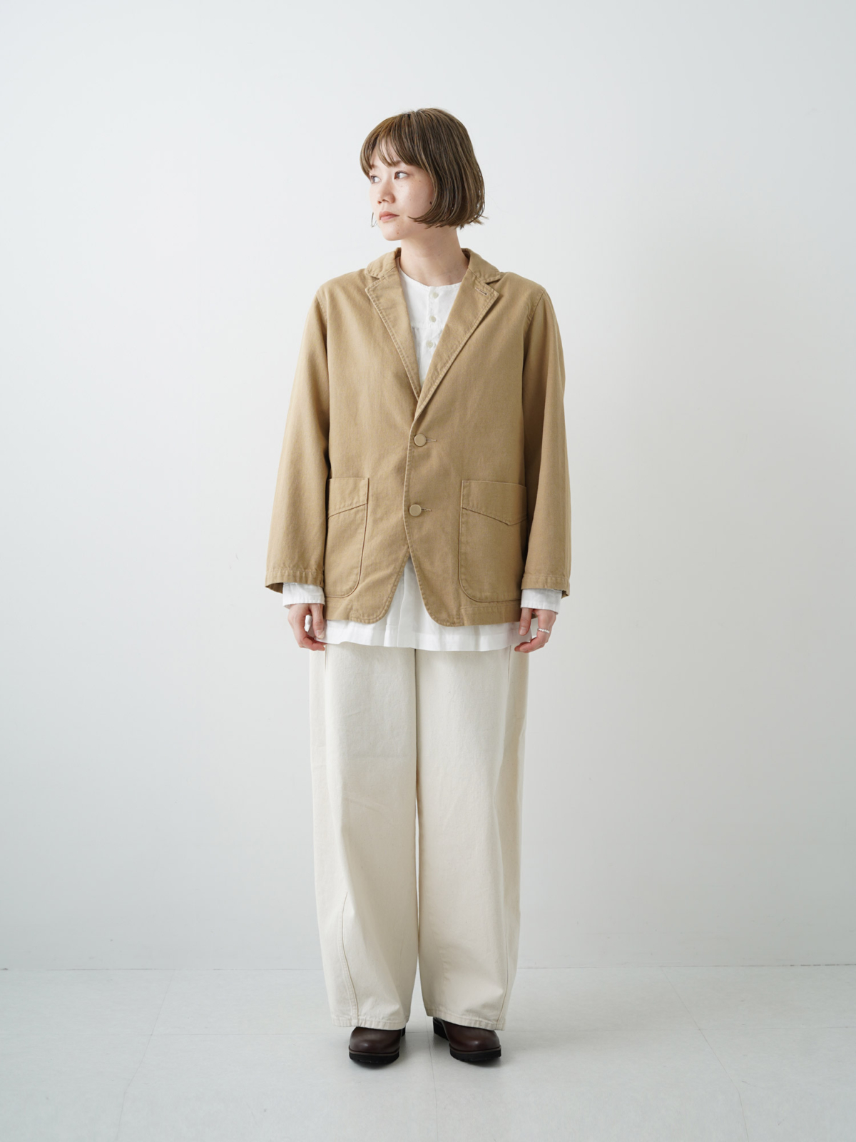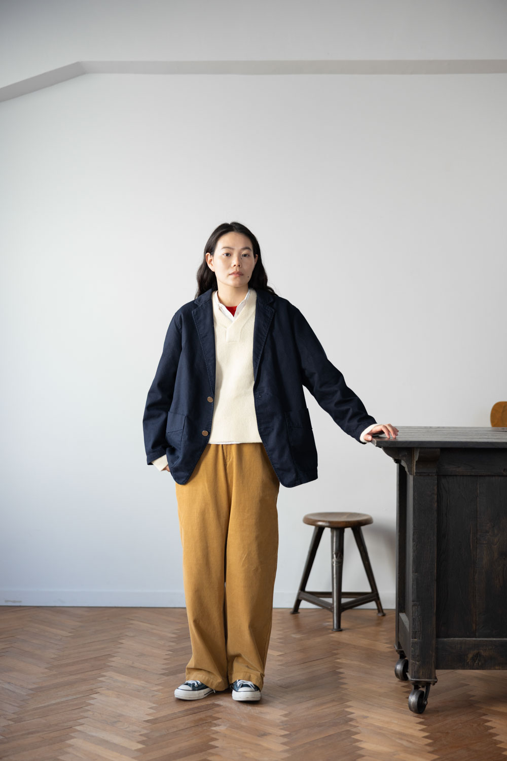 トラッドジャケットというとジャストサイズできちっとしたイメージがあるかもしれませんが、少しオーバーサイズで着ていただくことで、程よくリラックスな雰囲気も出てデイリーなジャケットに。