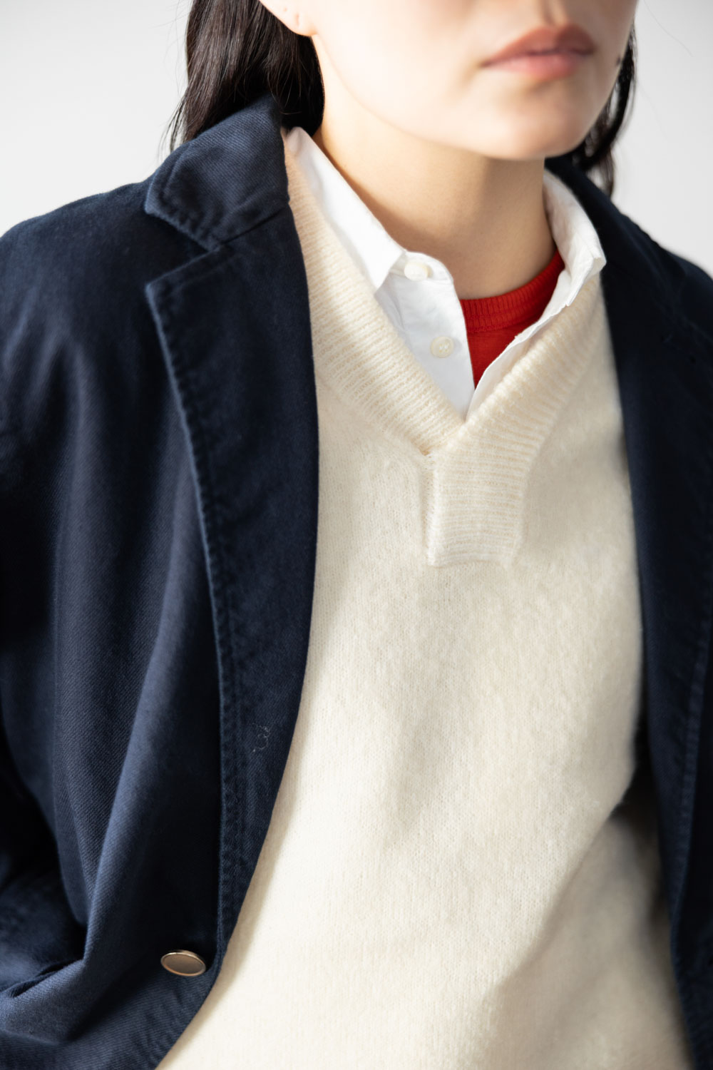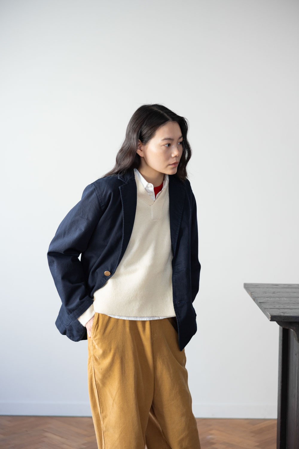 昨今の気候により、冬も短いということで、綿90%、毛10%の混合地のジャケットは季節の端境期にロングシーズン着回せる心強いアイテム。